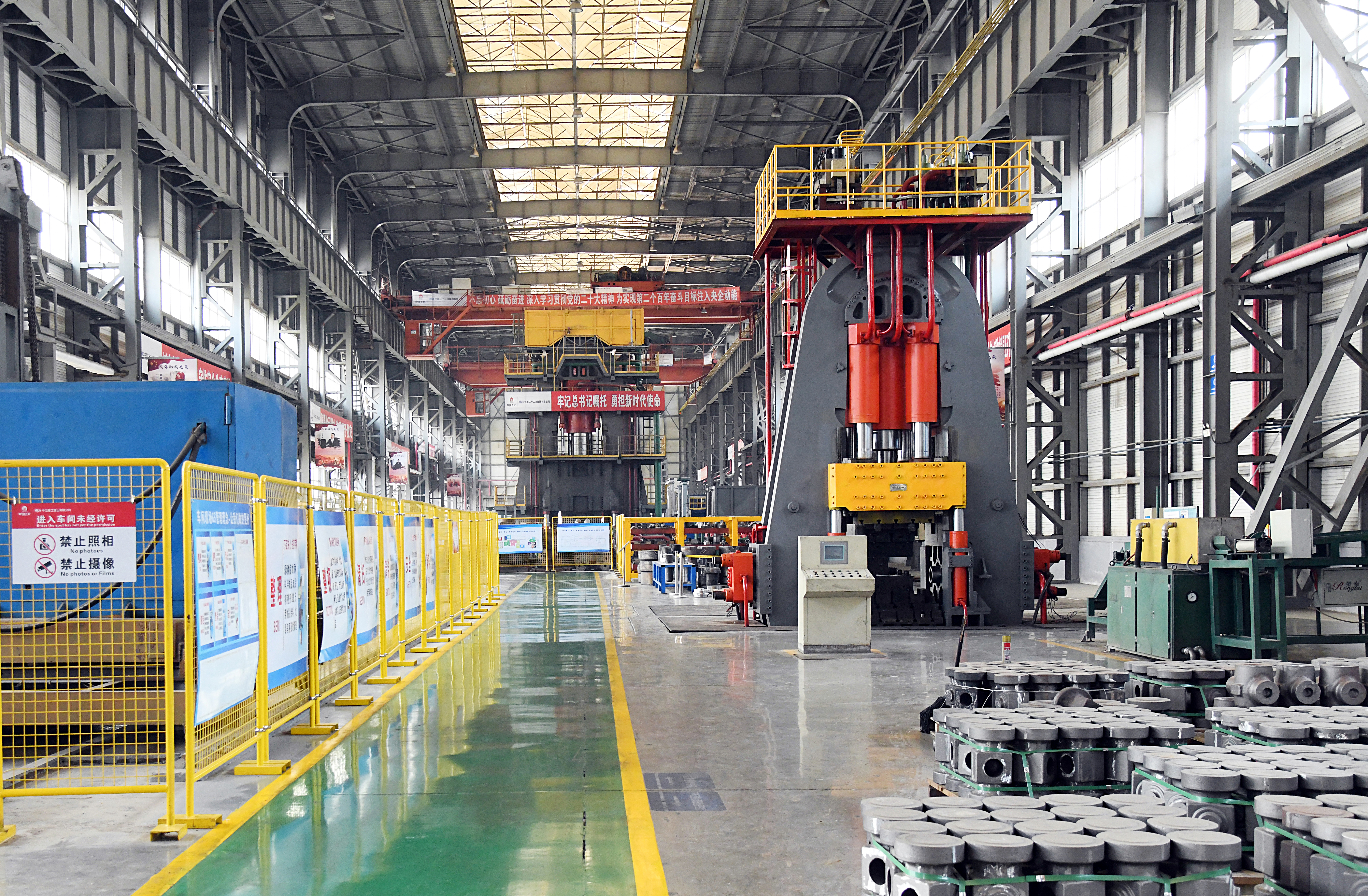 由中國二十二冶生產(chǎn)的重型壓機及產(chǎn)線擁有預應力鋼絲纏繞、特重型設備原位安裝、厚板焊接等核心技術,產(chǎn)品涵蓋(多向)模鍛液壓機、板片成型液壓機、換熱片壓機、海綿鈦壓機、特色中小型壓機等工藝生產(chǎn)線及配套設備。產(chǎn)品榮獲國家科學技術進步獎、國家優(yōu)質工程獎、冶金科學技術獎、魯班獎等多項榮譽。